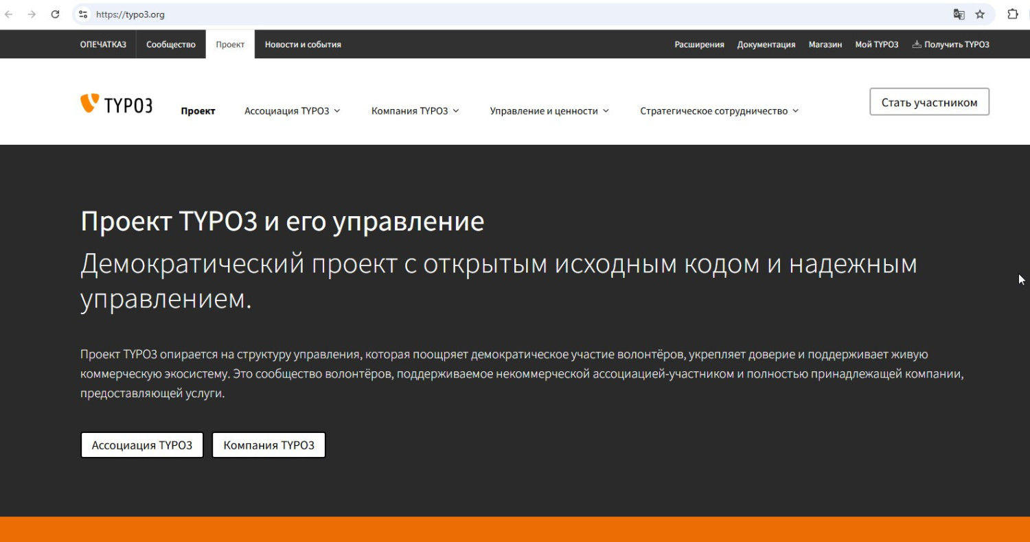 - TYPO3 - корпоративная система для крупных проектов и веб-порталов. Мощные инструменты для управления контентом.