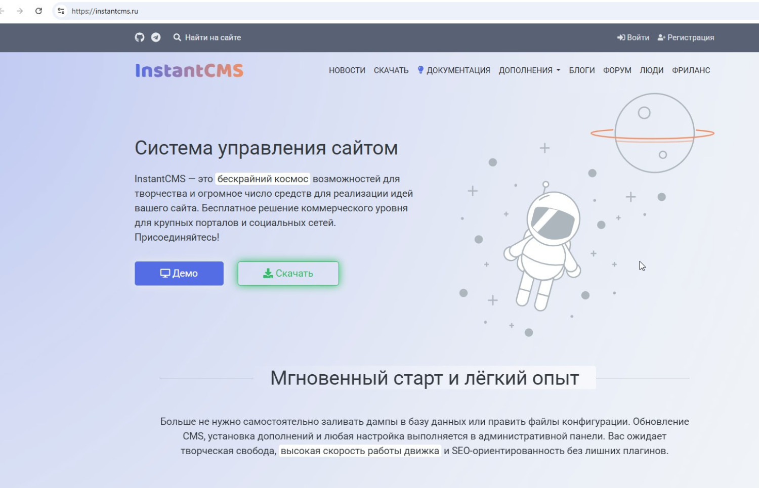 InstantCMS - популярное российское решение, изначально заточенное под создание активных социальных сетей, сообществ и порталов с пользовательским контентом. Платформа предлагает множество встроенных социальных функций: личные блоги, форумы, фотогалереи, системы рейтингов и приватных сообщений. Благодаря модульной структуре, на её основе можно построить сайт практически любой направленности, но её истинная сила раскрывается именно в проектах, где ключевую роль играет взаимодействие между пользователями.