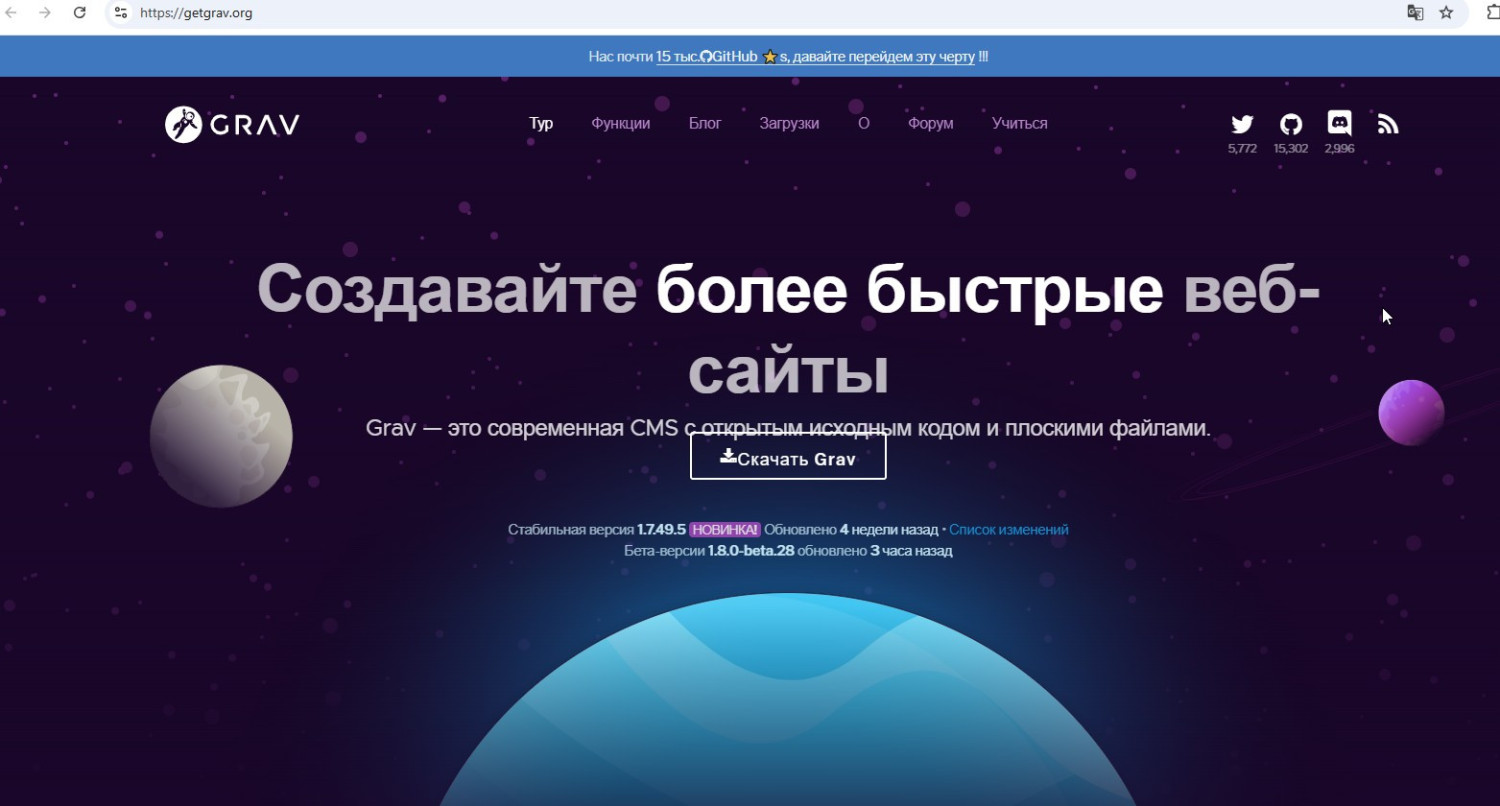 - Grav, будучи flat-file CMS, обеспечит высочайшую скорость работы и минимальные требования к хостингу, что идеально для небольших проектов.