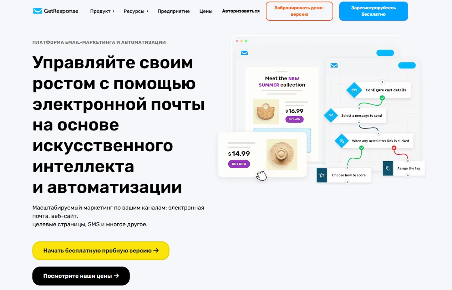 GetResponse - это многофункциональная платформа для интернет-маркетинга, которая объединяет в себе инструменты для email-рассылок, автоматизации, создания лендингов и проведения вебинаров. Сервис ориентирован на малый и средний бизнес, инфопредпринимателей и маркетологов, которым важно охватить все этапы воронки продаж в единой экосистеме.