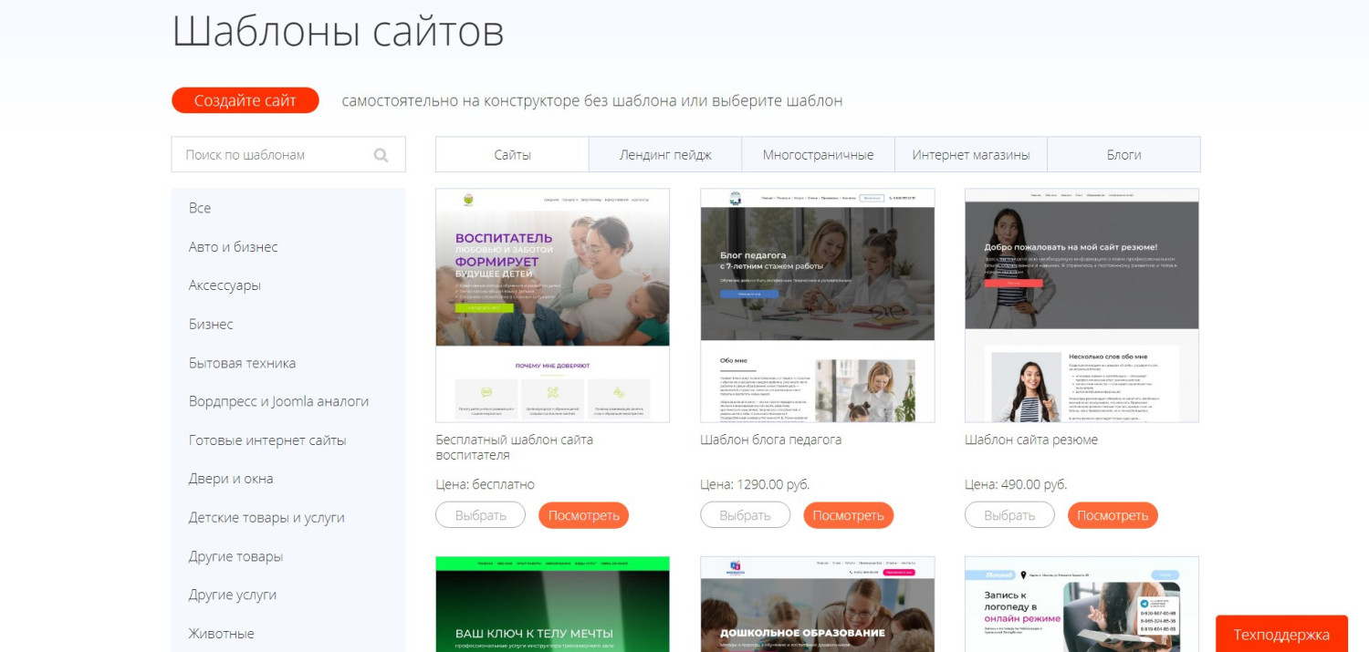 - Если у вас есть онлайн-курсы, подойдет шаблон с блоками для уроков. Для простого сайта-визитки можно выбрать минималистичный дизайн.