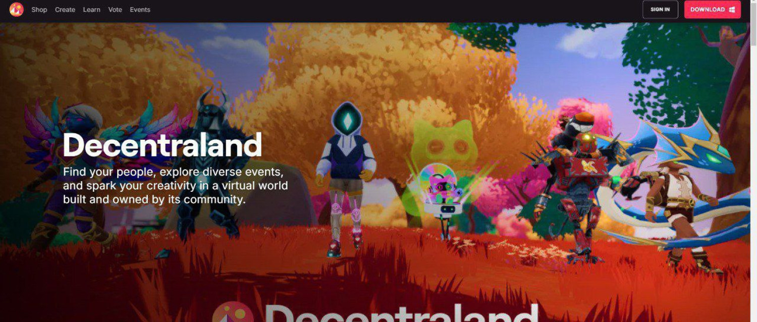 Мир виртуальной реальности, где игроки создают и продают контент за криптовалюту. Экономика полностью построена на токенах MANA.