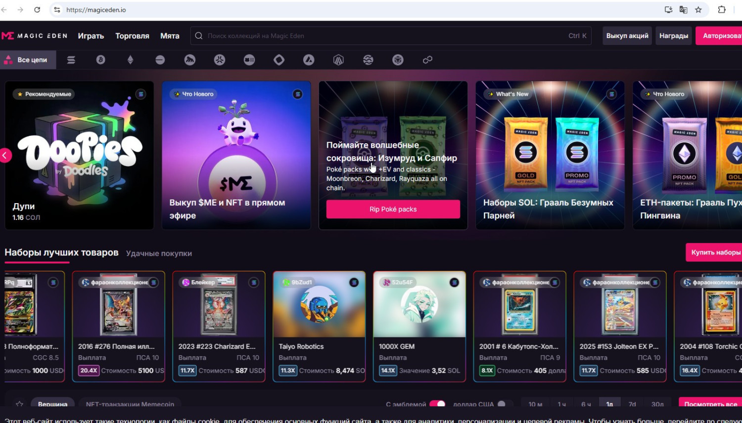 - Magic Eden - ведущий маркетплейс в экосистеме Solana, а также расширяющийся на Bitcoin Ordinals и Polygon. Низкие комиссии и быстрые транзакции.