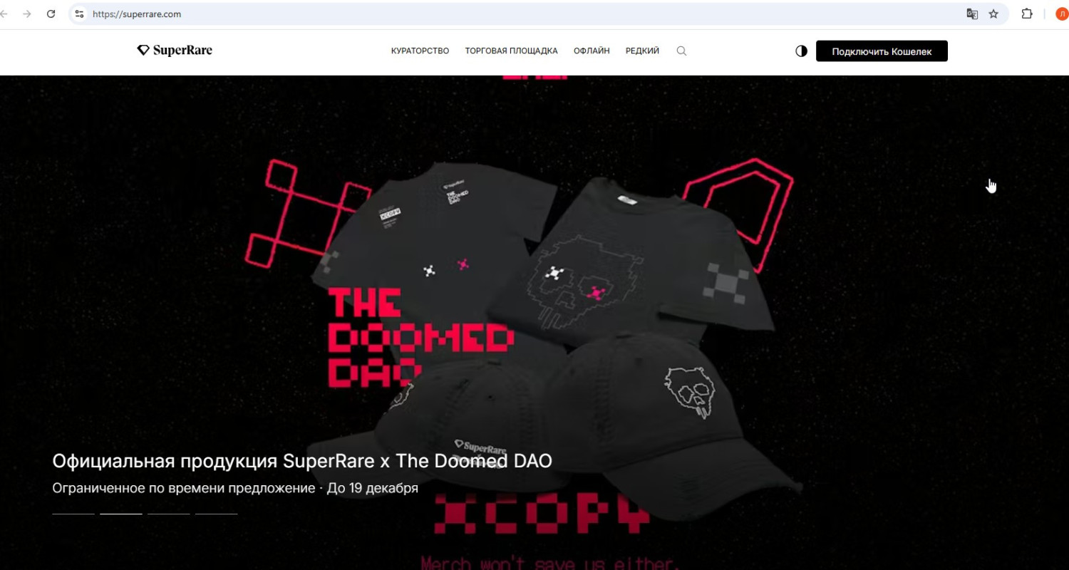 - Платформа активно развивает свою собственную социальную сеть и дао (SuperRare DAO), передавая часть управления и казначейства в руки держателей токена RARE, что позволяет сообществу напрямую влиять на будущее проекта и голосовать за приглашение новых художников.