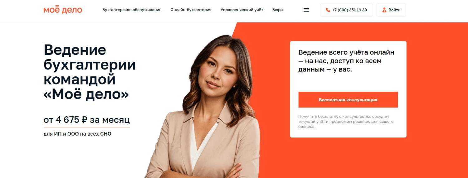 “Мое Дело” – это один из пионеров российского рынка онлайн-бухгалтерии, зарекомендовавший себя как надежный и многофункциональный сервис. Его основное преимущество заключается в простоте интерфейса, что делает его идеальным выбором для начинающих предпринимателей и самозанятых, не имеющих глубоких знаний в области бухгалтерии.