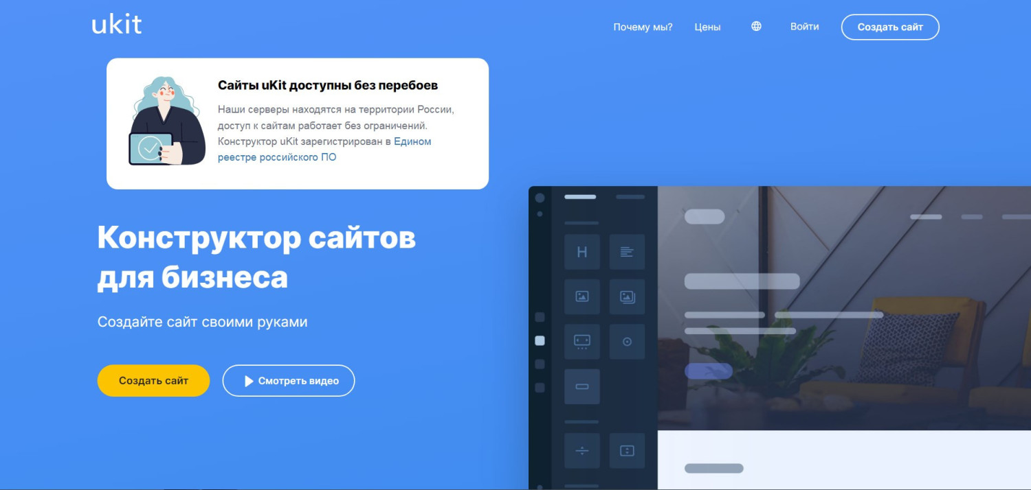 UKit - это отечественный конструктор, который стремится объединить визуальную простоту и современный дизайн Tilda с более выраженной коммерческой направленностью. Платформа делает акцент на инструментах, которые помогают не просто создать сайт, а привлечь клиентов из поисковых систем и эффективно презентовать товар или услугу. Это решение для тех, кто ищет баланс между красотой, функциональностью и продвижением.