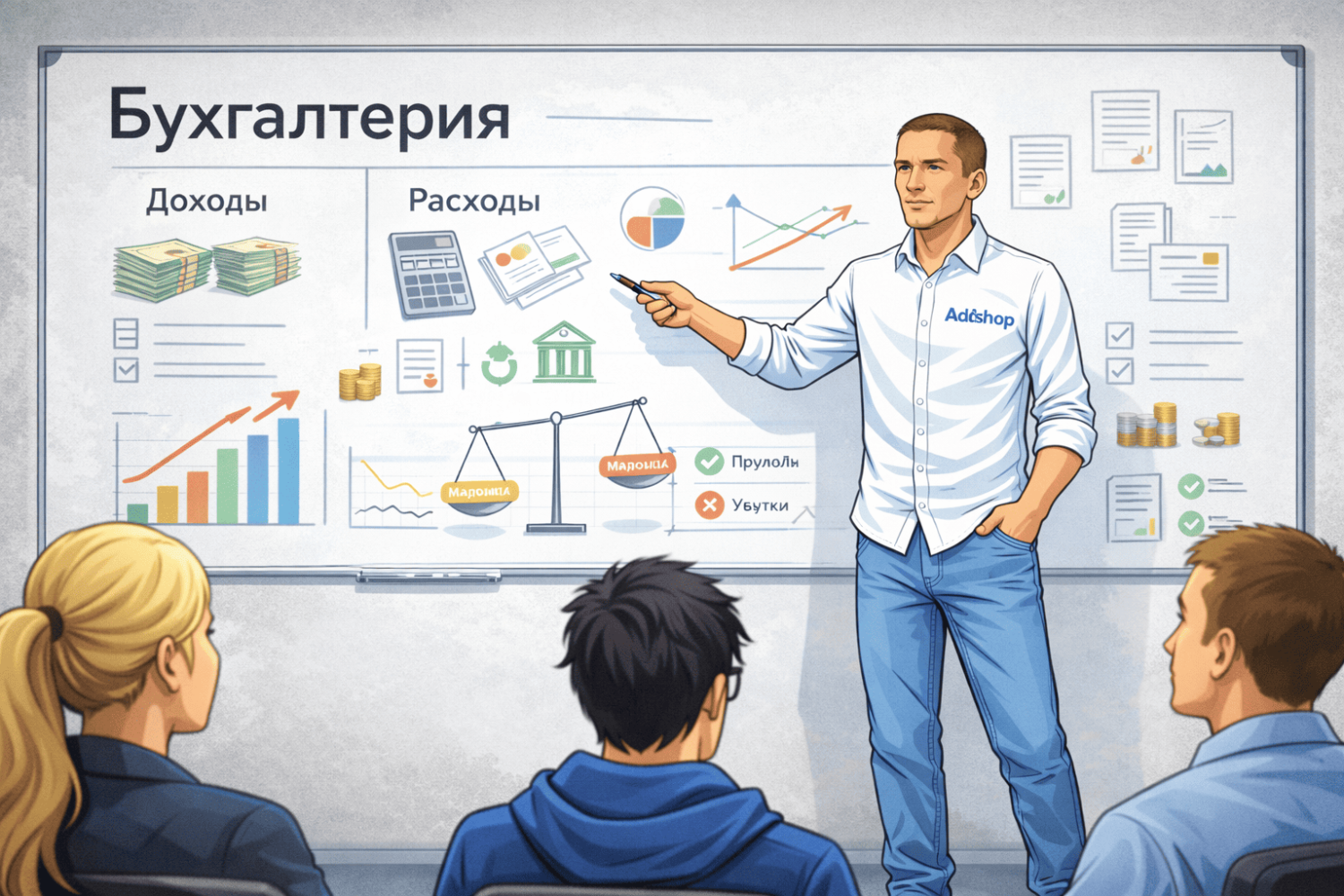 - Управленческие расходы: Зарплата директора, бухгалтера, аренда офиса, канцтовары.
