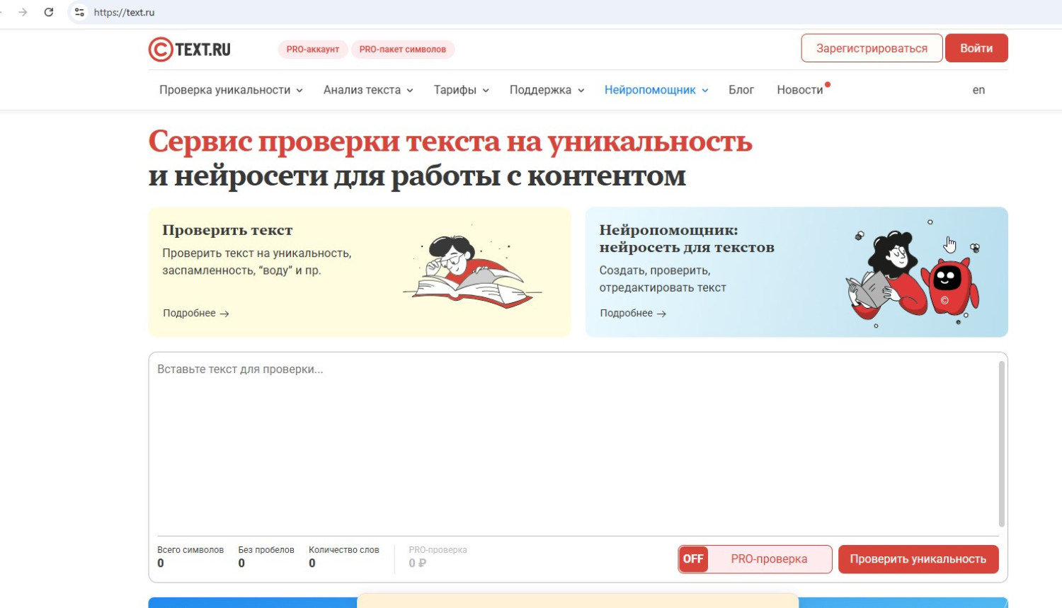 - Text.ru - одна из ключевых бирж контента и проверки уникальности для копирайтеров, рерайтеров и переводчиков.