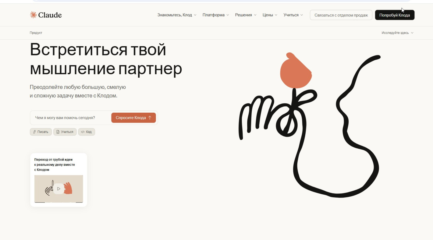 Claude позиционирует себя как самый надежный и вдумчивый ассистент. Его суперсила - работа с гигантскими объемами текста. Вы можете загрузить целую книгу или техническую документацию, и Claude проанализирует её, сохраняя контекст. Он уделяет особое внимание безопасности и этике, что делает его ответы структурированными, но иногда излишне осторожными.