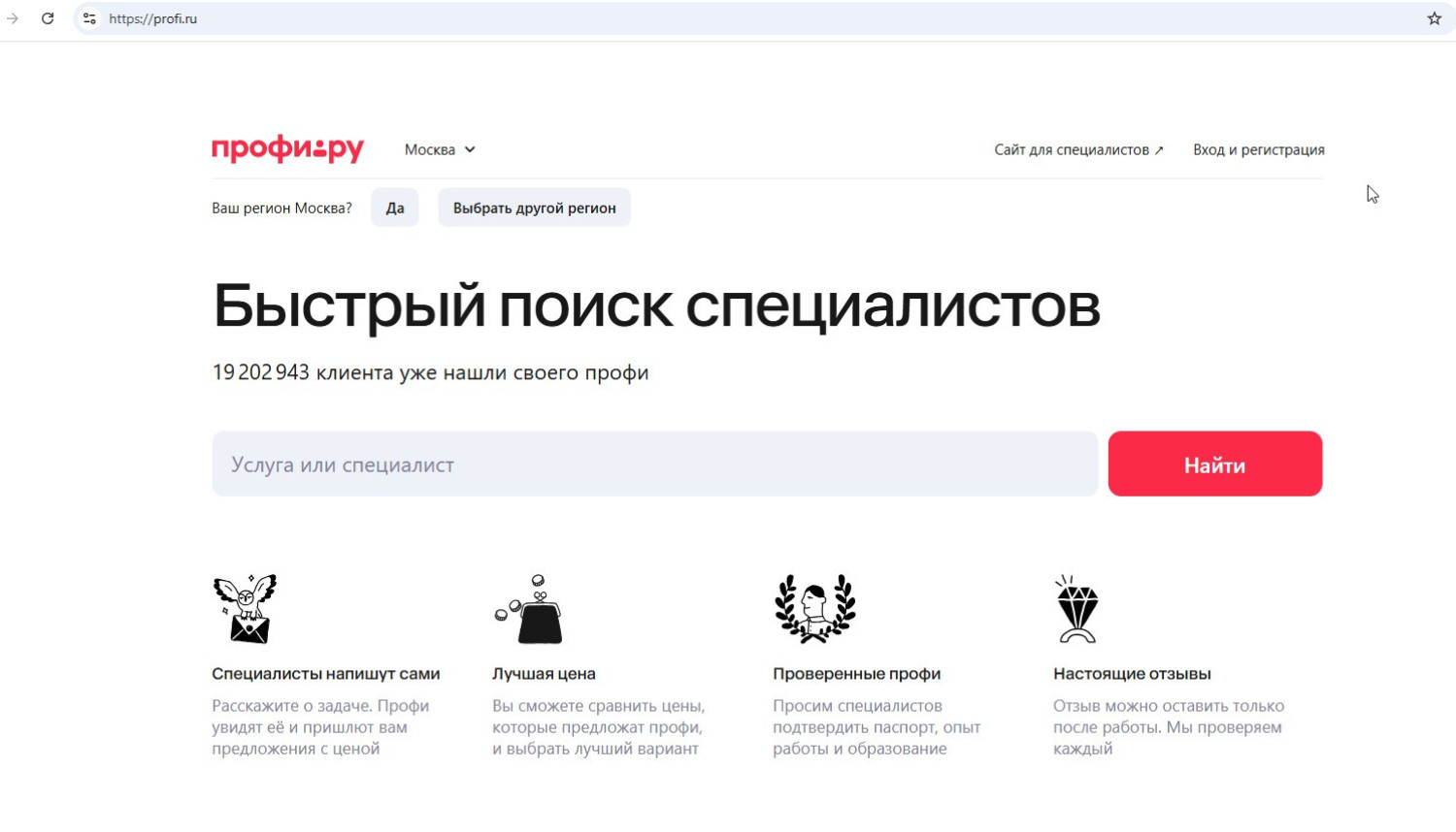 - Профи - главный конкурент в сфере бытовых услуг и обучения. Силен детальными цифровыми портфолио исполнителей, включающими 3D-туры с объектами «до/после».