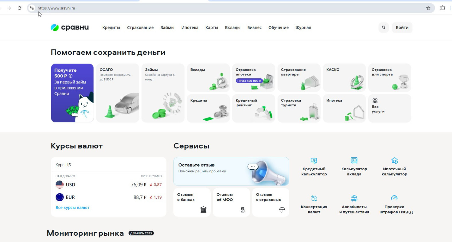 - Сравни.ру - ведущий финансовый агрегатор. В эпоху высокой ключевой ставки его сервисы по сравнению кредитов, ипотек и вкладов стали особенно востребованы. Добавил инструменты для финансового планирования.