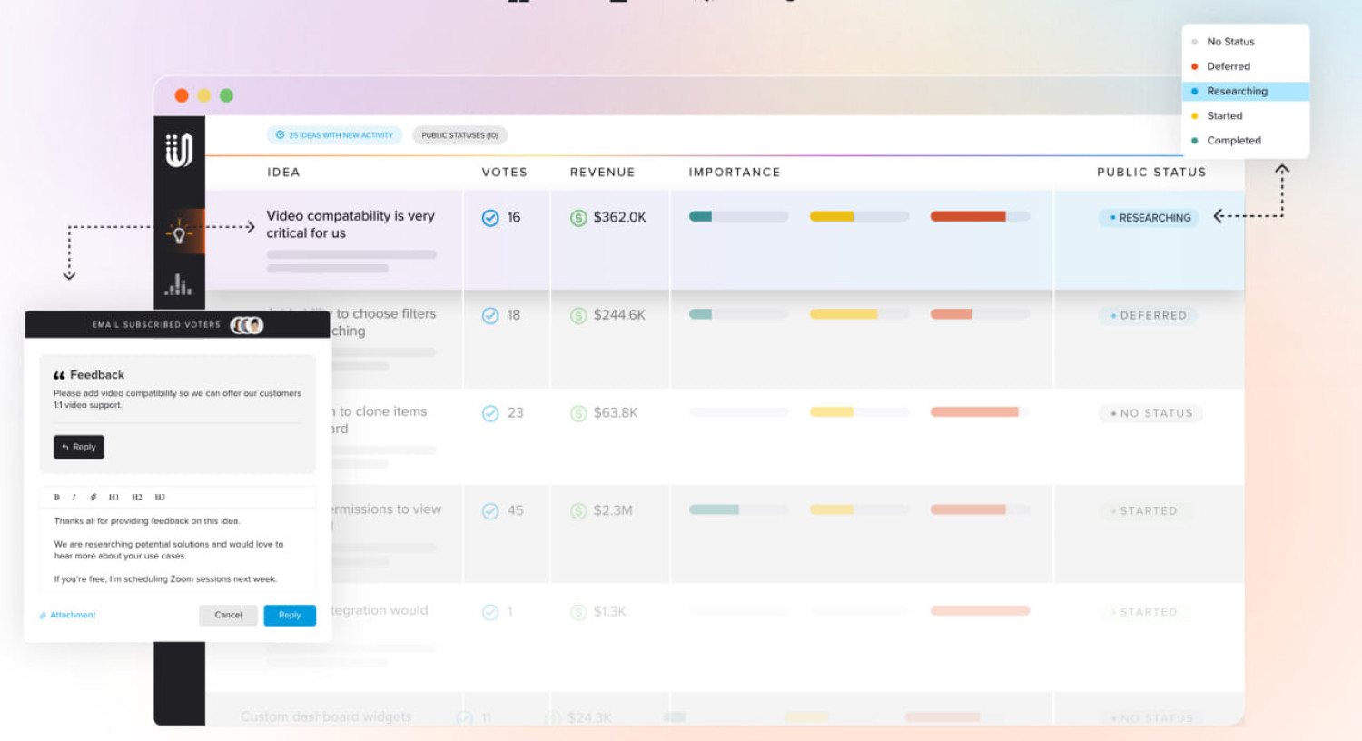 Это создает эффект сообщества и прозрачности, показывая клиентам, что их мнение не только слышали, но и рассмотрели. Система анализа и сегментации обратной связи помогает продукт-менеджерам выявлять наиболее востребованные функции и расставлять приоритеты в дорожной карте на основе реальных данных, а не предположений.