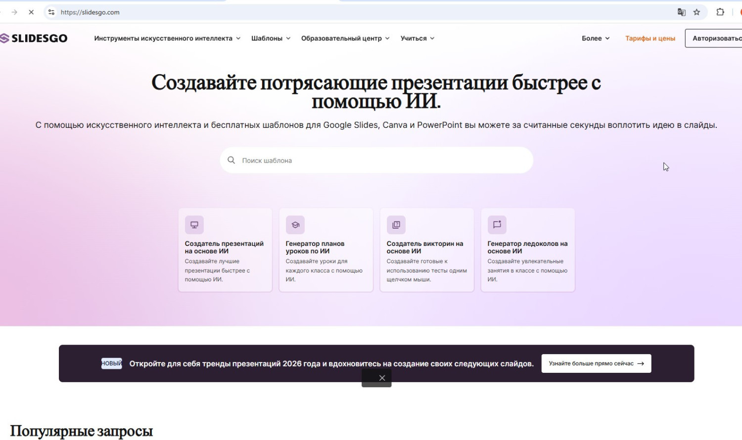 Одним из пионеров в этой области стал популярный сервис Slidesgo, который перешел от библиотеки готовых шаблонов к созданию полноценной нейросети для презентаций. Этот гибридный подход позволяет пользователям генерировать уникальные слайды, контент и визуальные элементы буквально за минуты, задавая простые текстовые запросы.