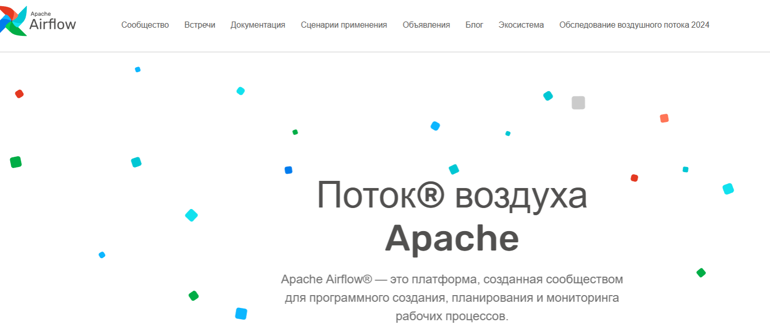 Airflow позволяет описывать сложные конвейеры данных через Python-скрипты, реализуя принцип "конфигурация как код". Платформа интегрируется с российскими облачными провайдерами и системами хранения данных, поддерживая работу в изолированных средах. Основная документация и ресурсы доступны через официальный фонд Apache.