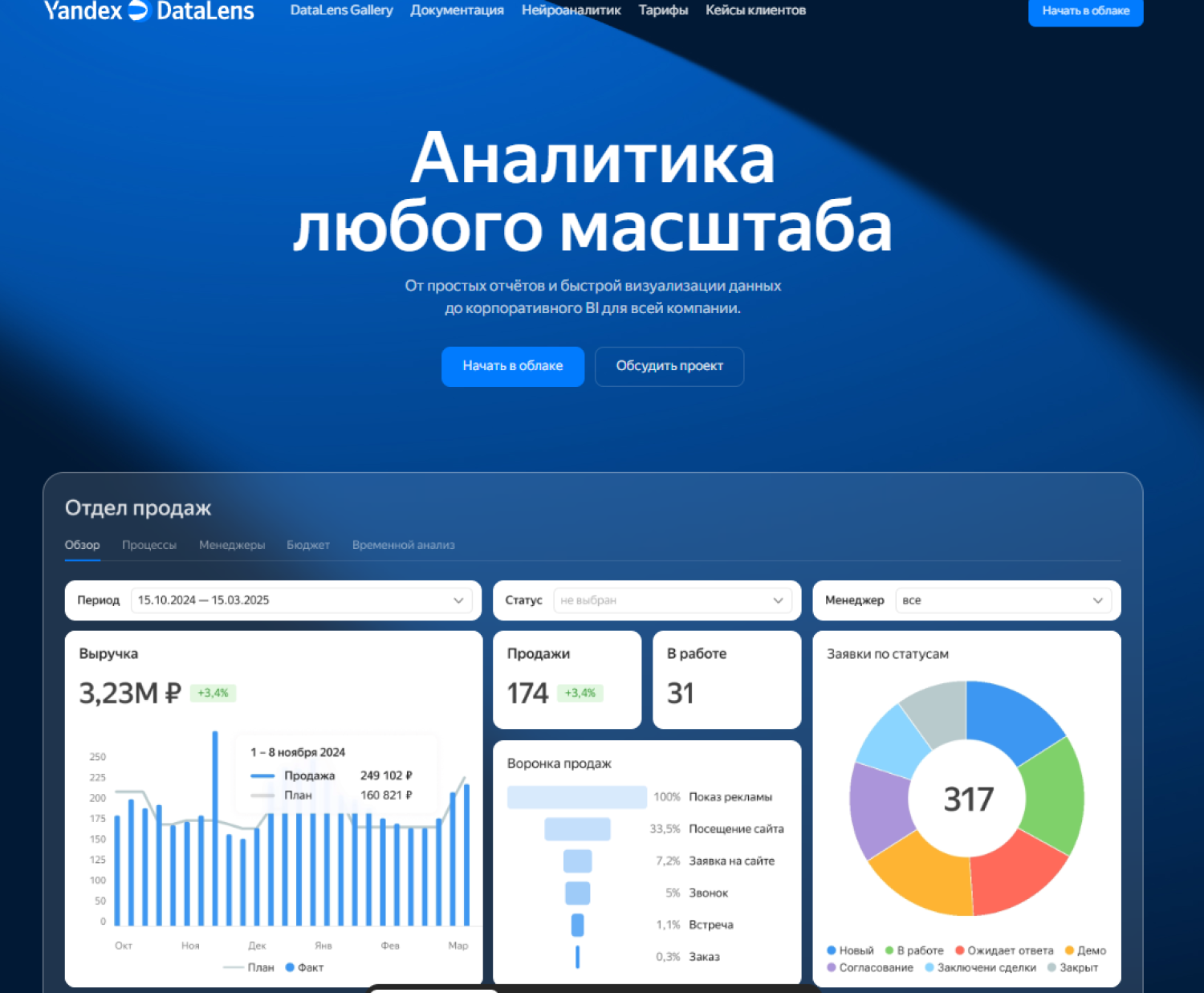 В рамках российской экосистемы Яндекс предлагает облачный сервис DataLens, который сочетает возможности подготовки данных и их визуализации. Сервис поддерживает подключение к разнообразным источникам данных, включая российские облачные хранилища и системы.