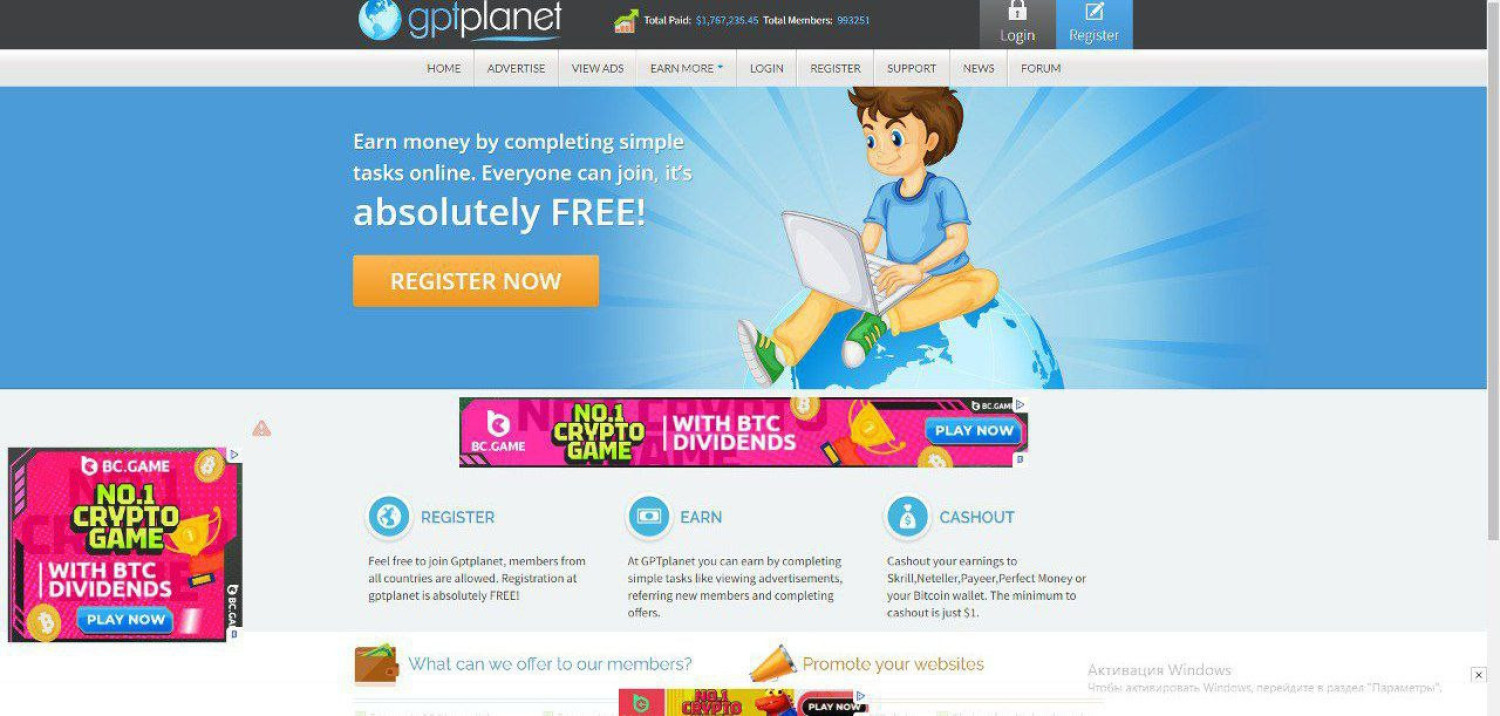 Сервис, который работает по системе GPT - «get paid to». Он предлагает разные виды заданий и ориентирован на международную аудиторию.