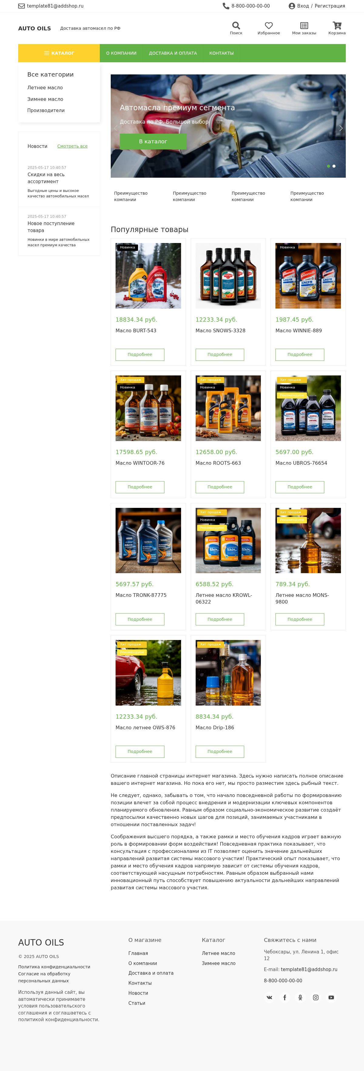 Используйте наш конструктор интернет магазинов автомасел, чтобы создать профессиональный и эффективный сайт для своего бизнеса. Это быстрый, доступный и надежный способ наладить общение с клиентами, организовать удобную систему заказов и упростить управление бизнесом.