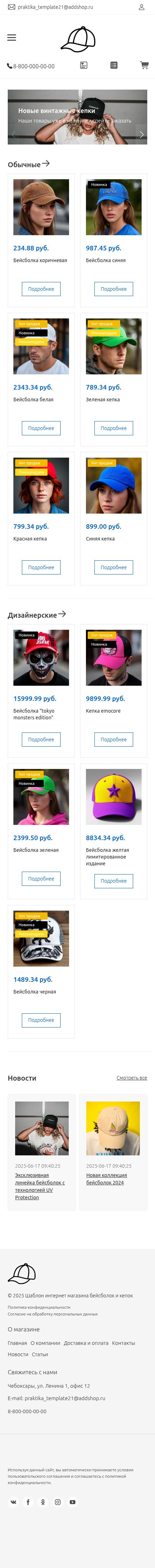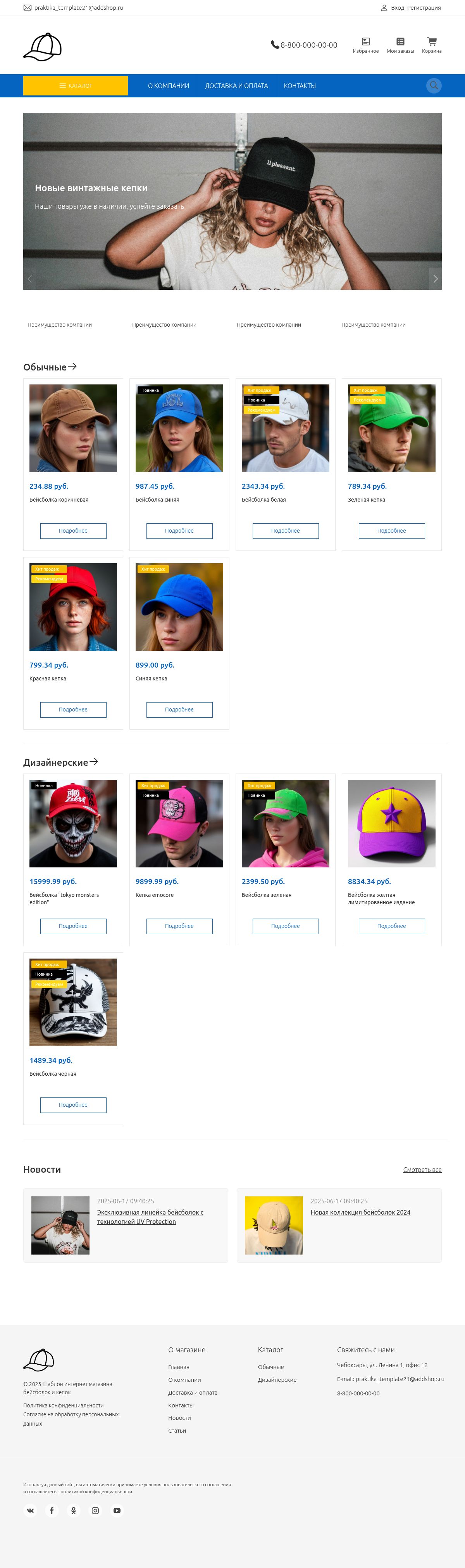 Шаблон интернет магазина бейсболок и кепок