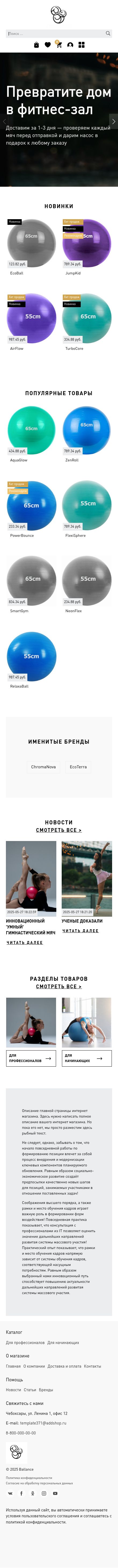 Для покупателей предусмотрены разделы с видеоуроками: комплексы упражнений для разных уровней подготовки, программы для укрепления мышц спины и корпуса, детские игровые тренировки. Интеграция с удобными платежными системами и быстрой доставкой делает покупку комфортной. Особенностью шаблона является раздел "Истории успеха" с отзывами и фото клиентов, которые достигли результатов с помощью тренировок, а также возможность получить консультацию фитнес-тренера по подбору мяча.
