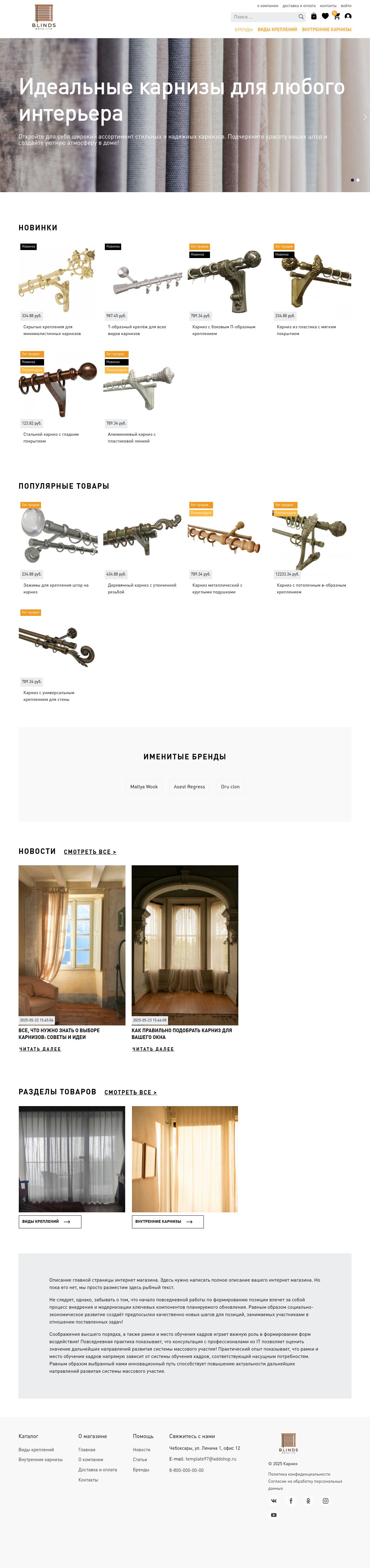 В настоящее время создание интернет-магазина карнизов – это проще простого и под силу каждому. Забудьте о необходимости владеть навыками кодирования или тратить значительные суммы на услуги веб-разработчиков. Чтобы создать интернет-магазин карнизов, достаточно выбрать подходящий шаблон интернет магазина из нашего обширного каталога, добавить качественные фотографии, написать интересные и подробные тексты, подчеркивающие уникальность и преимущества предлагаемых товаров. И уже через короткое время ваш интернет-магазин будет полностью готов к работе, приему заказов и взаимодействию с вашими первыми покупателями.