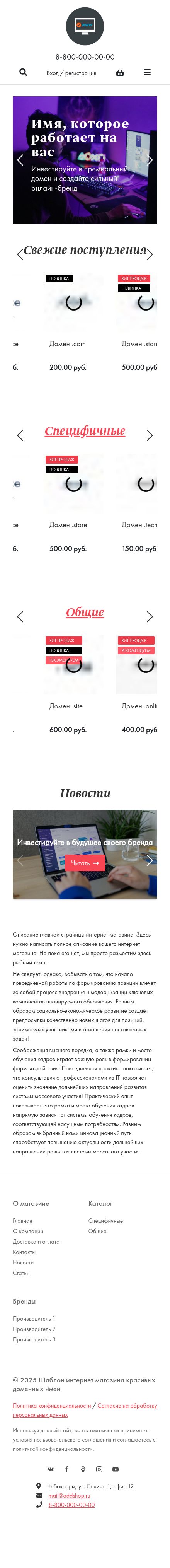 Шаблон интернет магазина красивых доменных имен