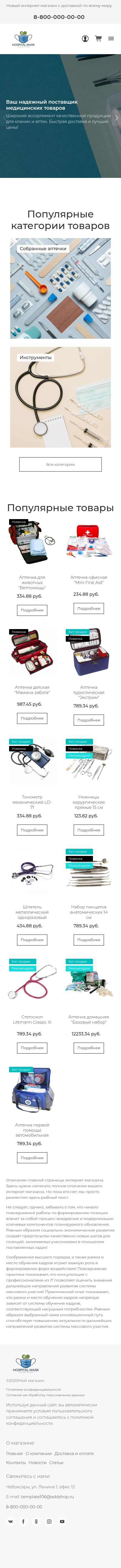 Шаблон интернет магазина медицинских товаров на Addshop — это готовое решение для быстрого запуска онлайн-продаж широкого ассортимента продукции для здоровья и красоты. Он разработан с учётом специфики медицинской отрасли, обеспечивая удобство как для продавца, так и для покупателя.