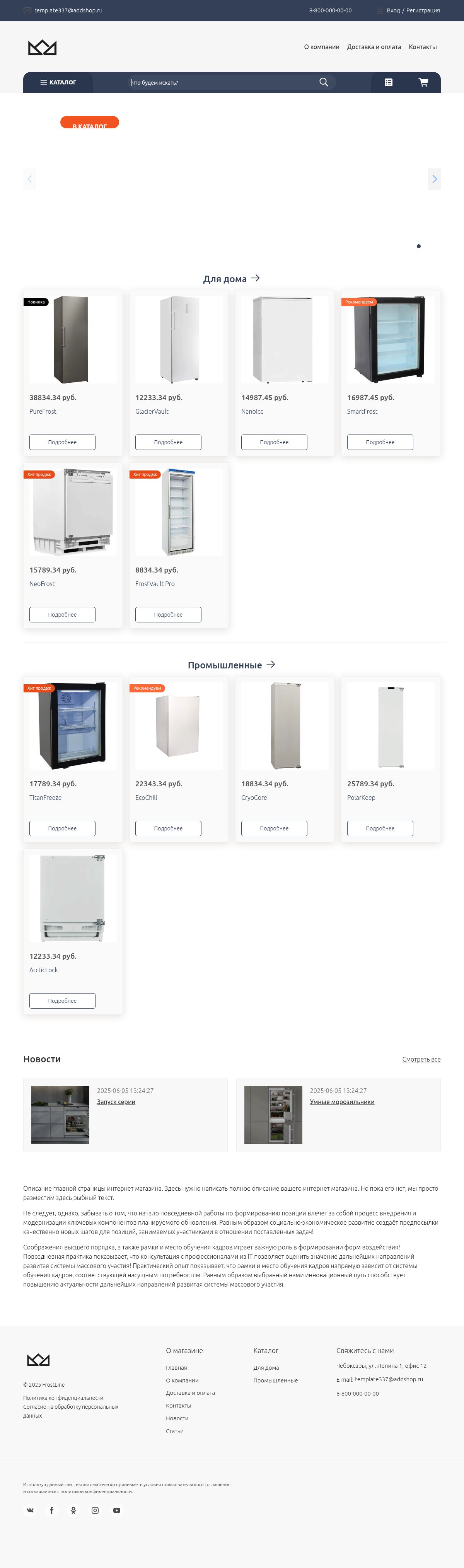 Сделать интернет-магазин морозильного оборудования стало удивительно легко! Вам больше не потребуется знание программирования или услуги дорогих разработчиков. Достаточно выбрать подходящий шаблон интернет магазина из нашей обширной коллекции, загрузить высококачественные фотографии ваших товаров, составить привлекательные и информативные описания, и уже через несколько часов ваш интернет-магазин будет полностью готов к приёму заказов. Создание интернет-магазина морозильного оборудования абсолютно всем, независимо от их опыта в веб-разработке.