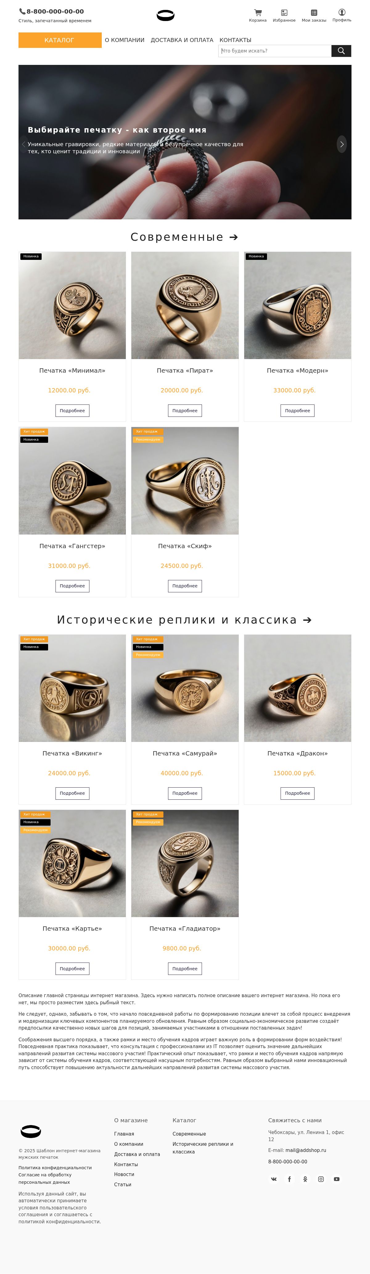 Стильный и функциональный шаблон интернет-магазина для презентации мужских перчаток различных категорий, сочетающий элегантность с практичностью. Лаконичный дизайн в сдержанных тонах с акцентами на фактуры кожи и текстиля подчеркивает мужской характер продукции, создавая атмосферу премиального бутика аксессуаров. Адаптивная верстка обеспечивает безупречное отображение каталога на всех устройствах — от компактных смартфонов до широкоформатных мониторов, что особенно удобно для покупателей, выбирающих аксессуары в дороге или перед важной встречей.