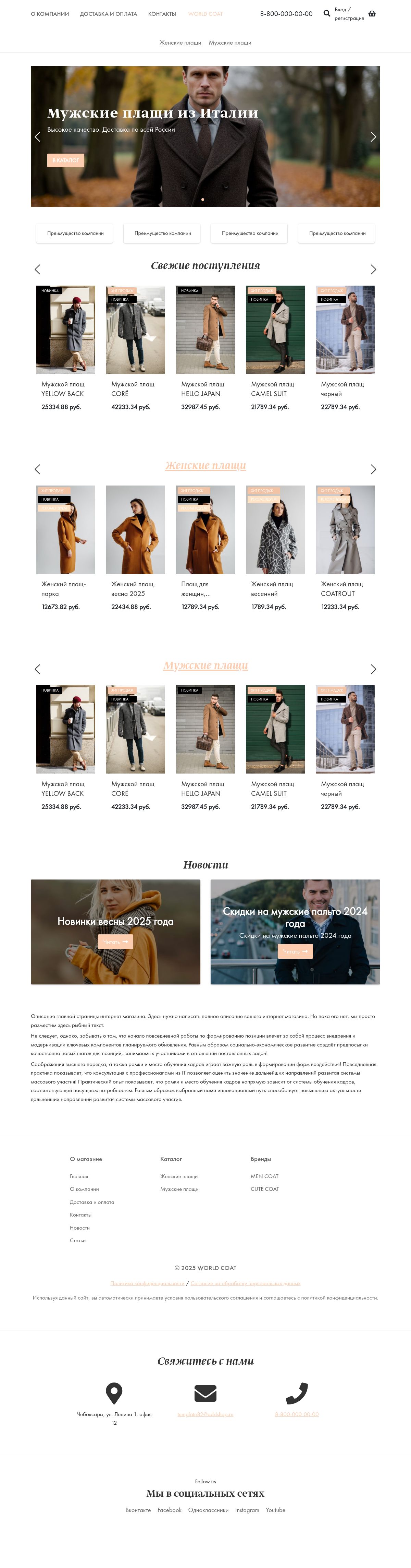 Представляете свой бизнес – интернет-магазин плащей, отправляющий стильные вещи в любую точку планеты? Помните, что сайт – это ваша онлайн-витрина, первое, что увидят ваши потенциальные клиенты. Чтобы привлечь их внимание и завоевать доверие, сделать интернет-магазин плащей нужно современным, визуально привлекательным и содержательным
