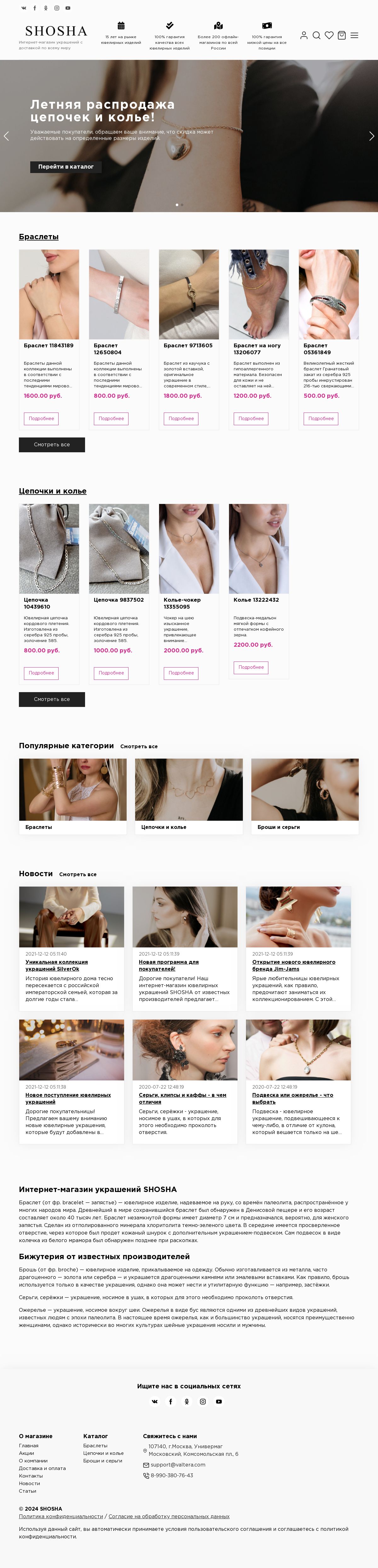 - разделы каталога: Браслеты, Цепочки и колье, Броши и серьги.
